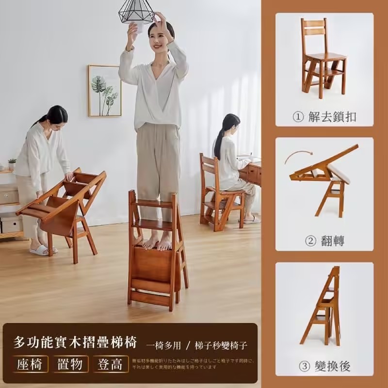 4分鐘前【現貨】二合一折疊梯子椅,木料製作,打磨精緻,可變為簡易小梯子,可幫助拿取高處物品 - 【两層|純實木|翻转收纳】NT$1880