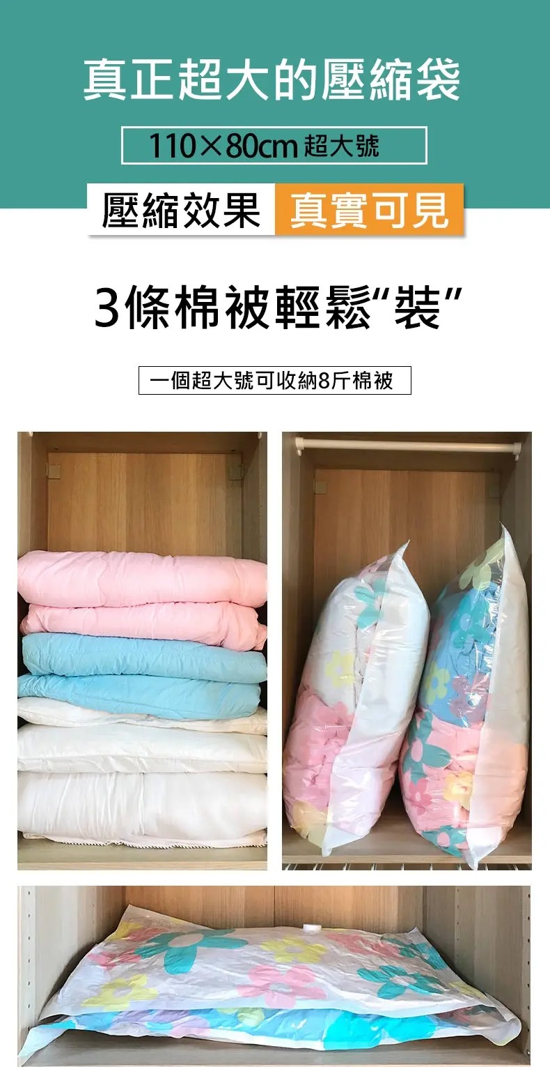 7分鐘前【居家神器】被子衣物整理真空壓縮收納袋+配電動氣壓手泵 - 特惠3入組,共33件套+電動抽氣泵*3 NT$1598